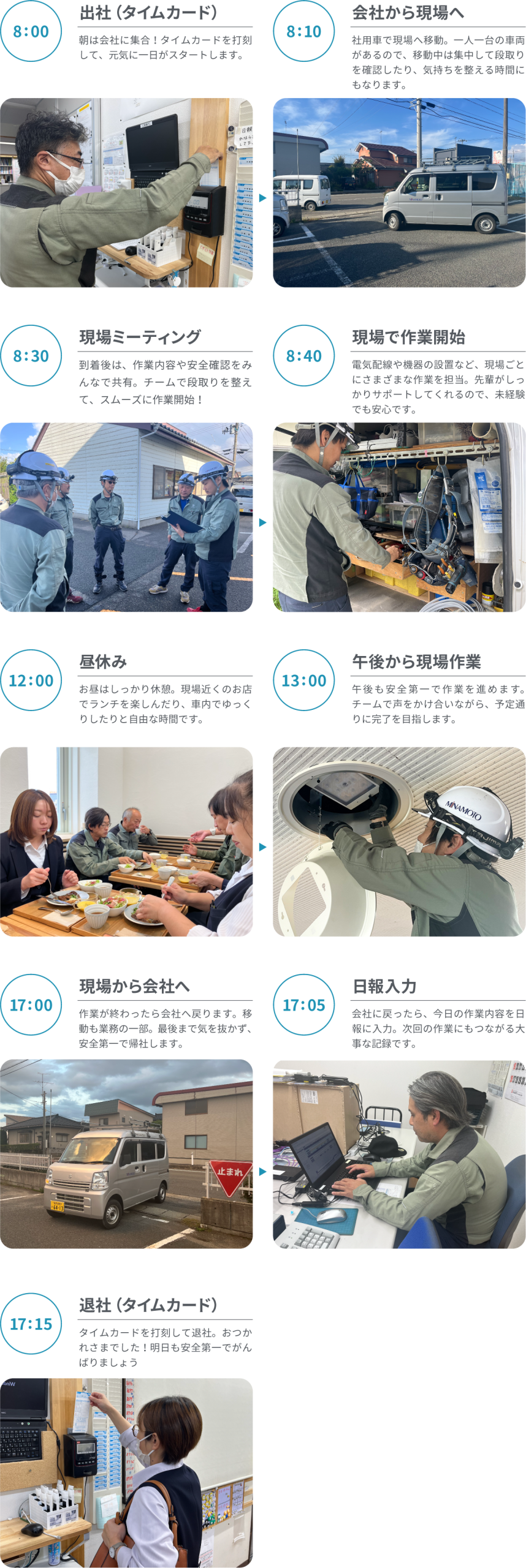 電気工事は、まちの暮らしを支えるやりがいのある仕事。 照明がつく、エアコンが動く、機械が動き出す――そんな「当たり前」を守るのが、私たちの役割です。
